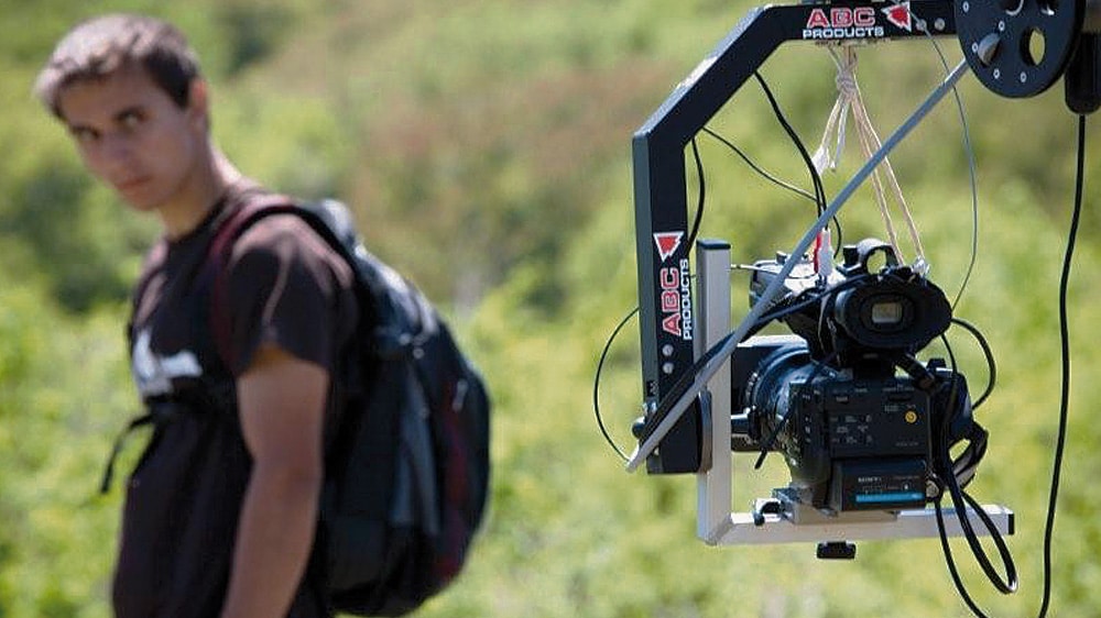 The frame is welded from aluminum profiles and carries a camera weight of 15kg with a self weight of only 6kg.